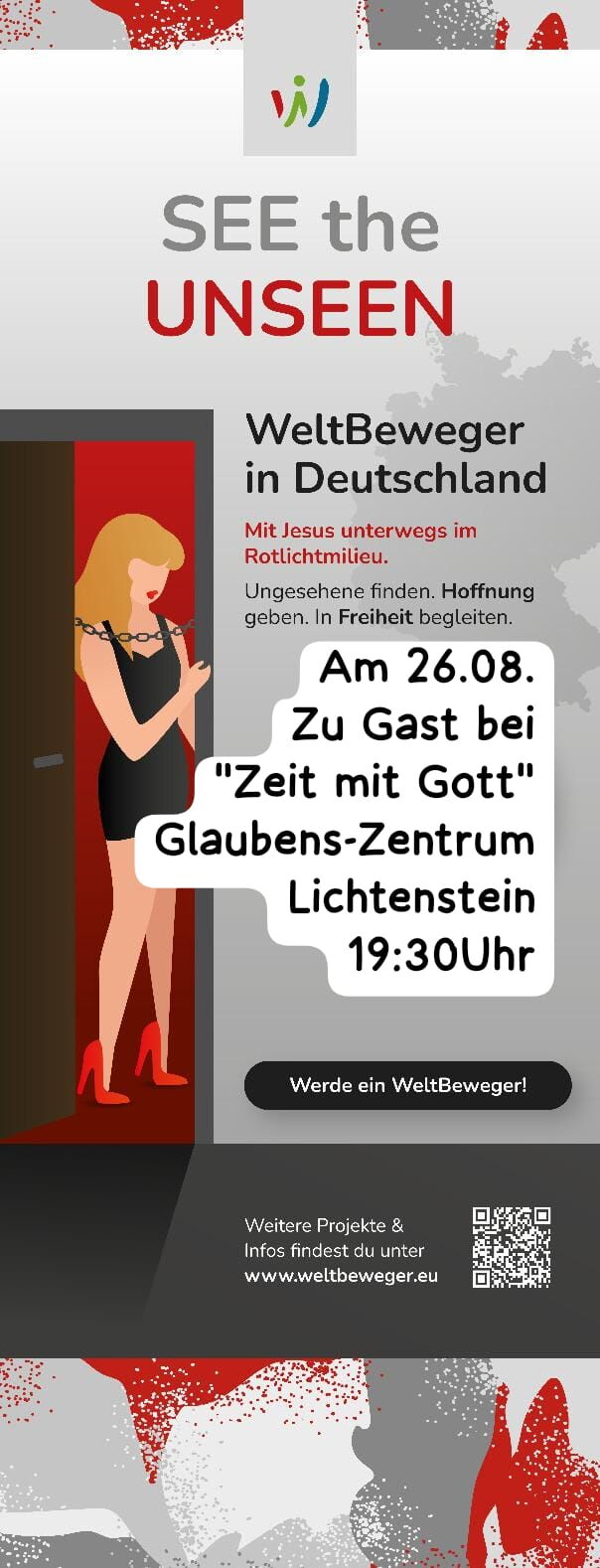 Unsere Lisa berichtet über unseren Besuchsdienst im Rotlichtmilieu am 26. August 2025 um 19.30 Uhr im Glaubenszentrum Lichtenstein. Sie wird zudem einen spannenden Input geben.