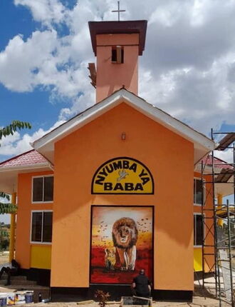 Im August 2023 wurde das Gemälde an unserer Kapelle fertig. Halleluja! Die Inschrift heißt übersetzt "Vaterhaus." Hier können unsere Schüler und Waisenkinder ihren Vater im Himmel begegnen.